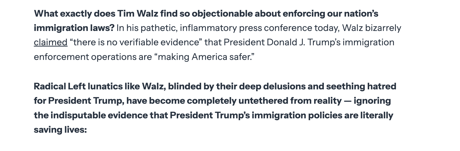 Article - Walz Is Wrong: President Trump’s Immigration Policies Are Saving Lives