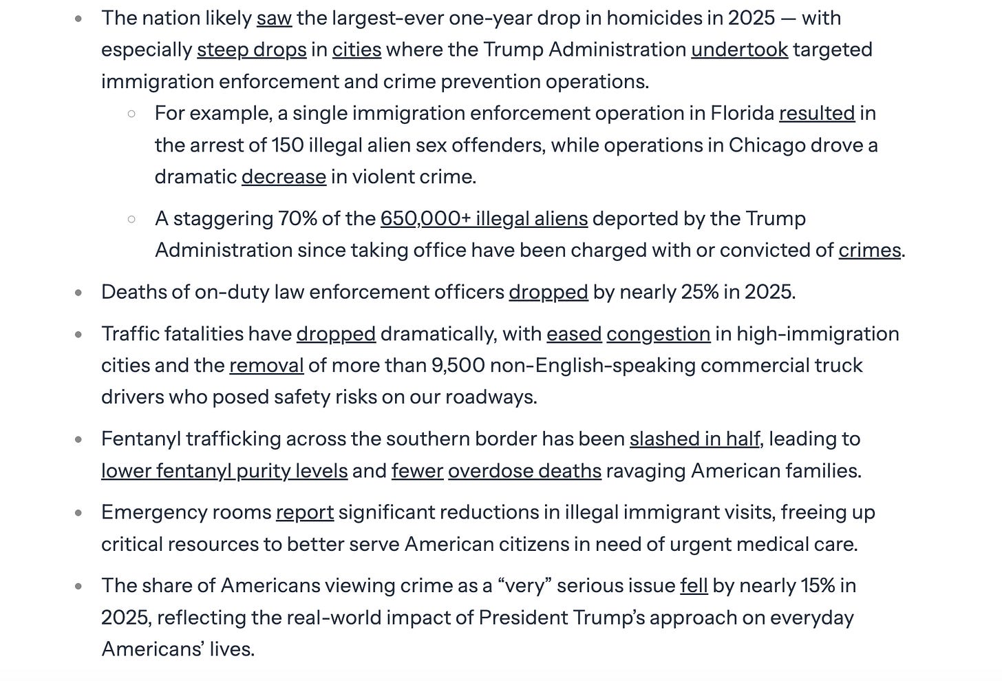 A flurry of administration-backed messaging pieces on immigration, ICE, law enforcement, and dietary guidelines
