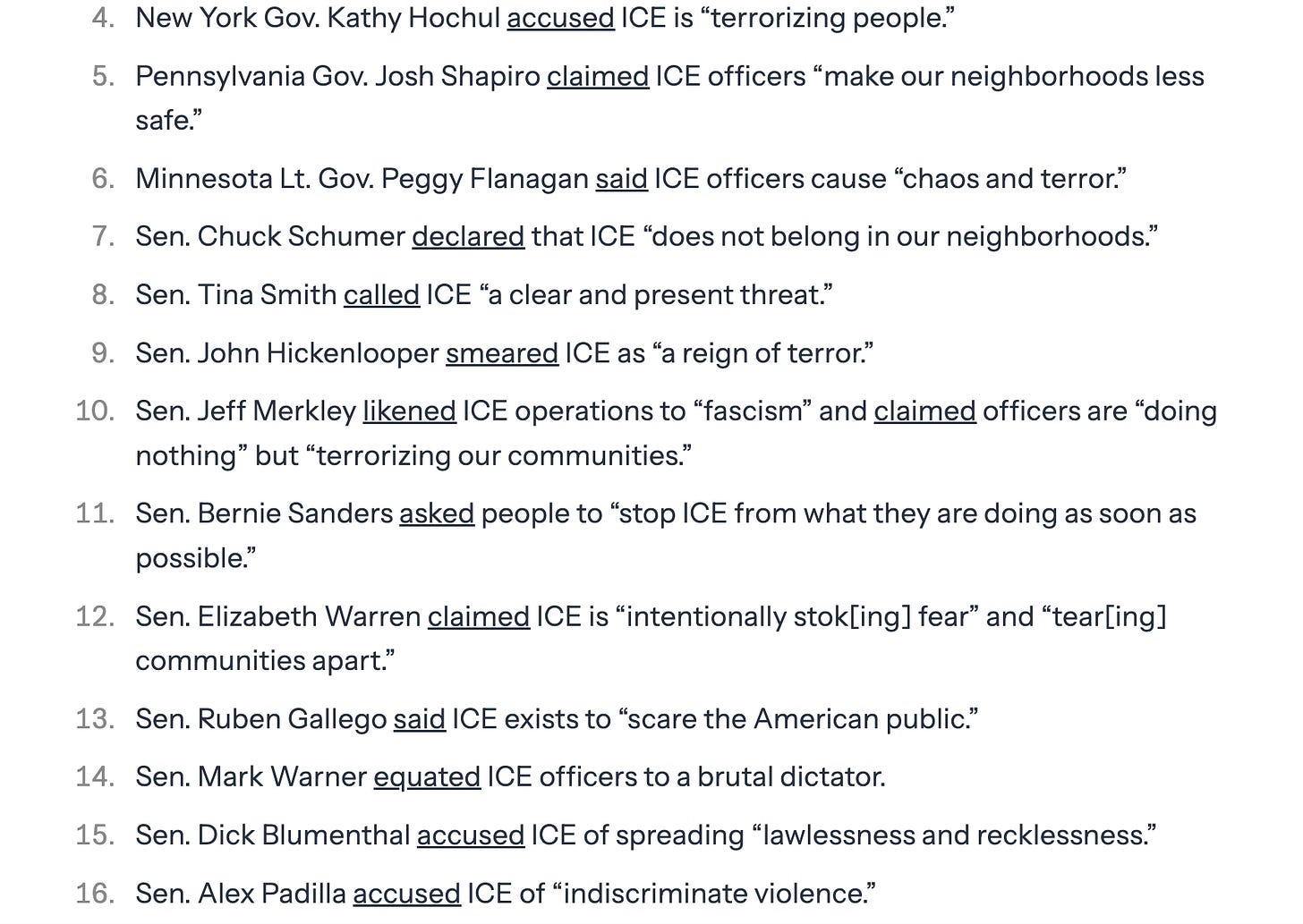 This is a list of 57 things various Democratic lawmakers have said about ICE’s activities. It starts with: