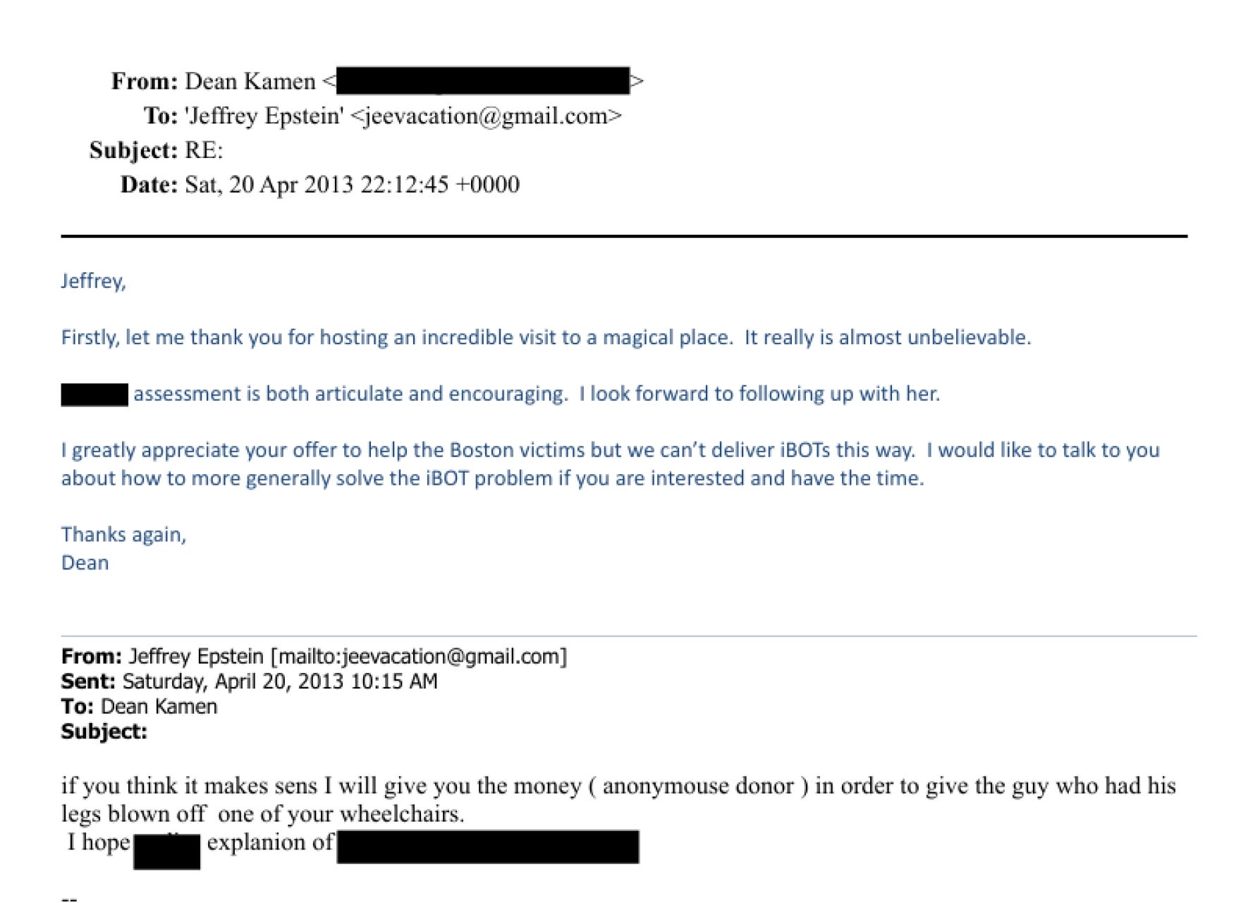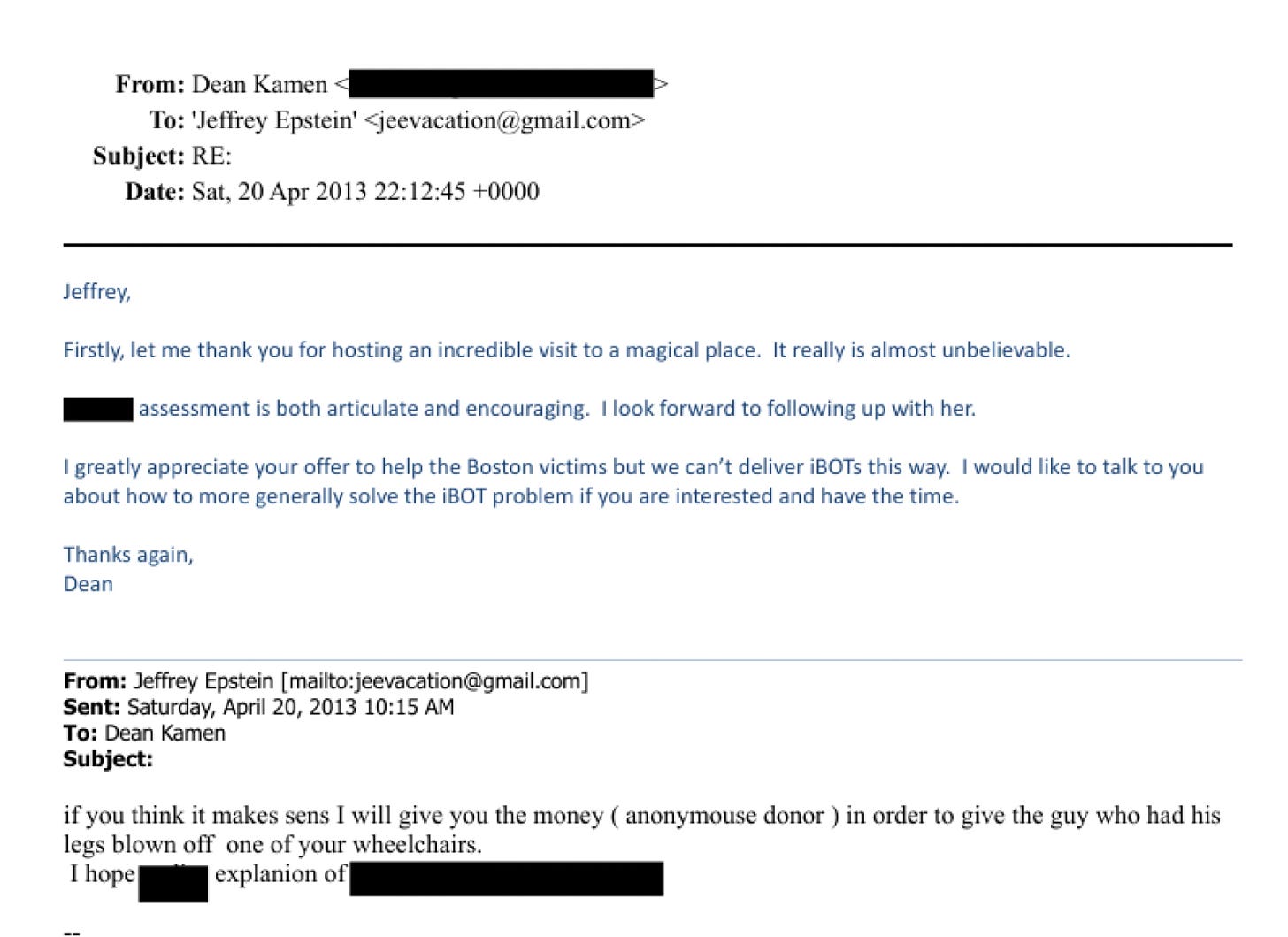 Segway inventor Dean Kamen emailing Epstein about his “magical” time on the island.