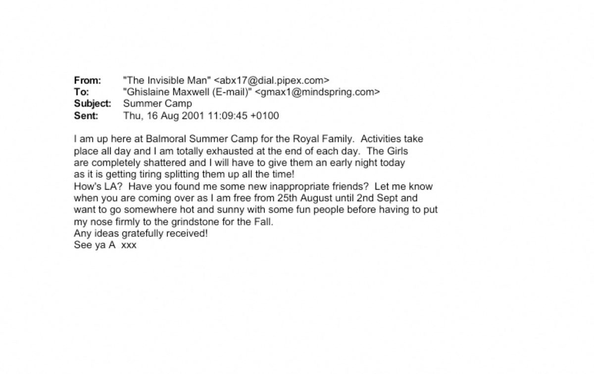 The “Invisible Man,” i.e. Prince Andrew, emailing Ghislaine Maxwell